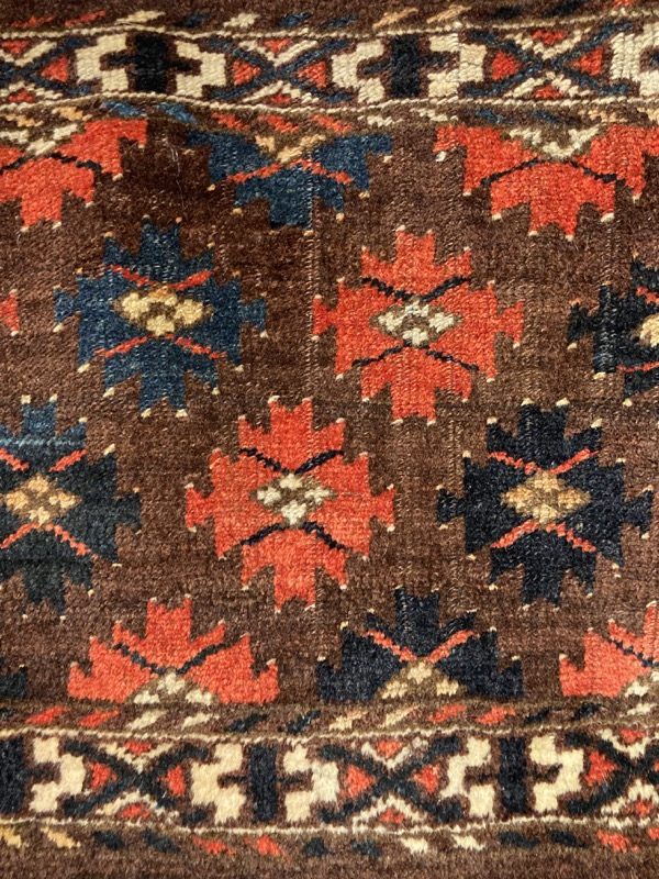 An interesting pair of late 19th century Yomut torba, with a strong red and vibrant colouring. Good condition for their age, some minor repairs