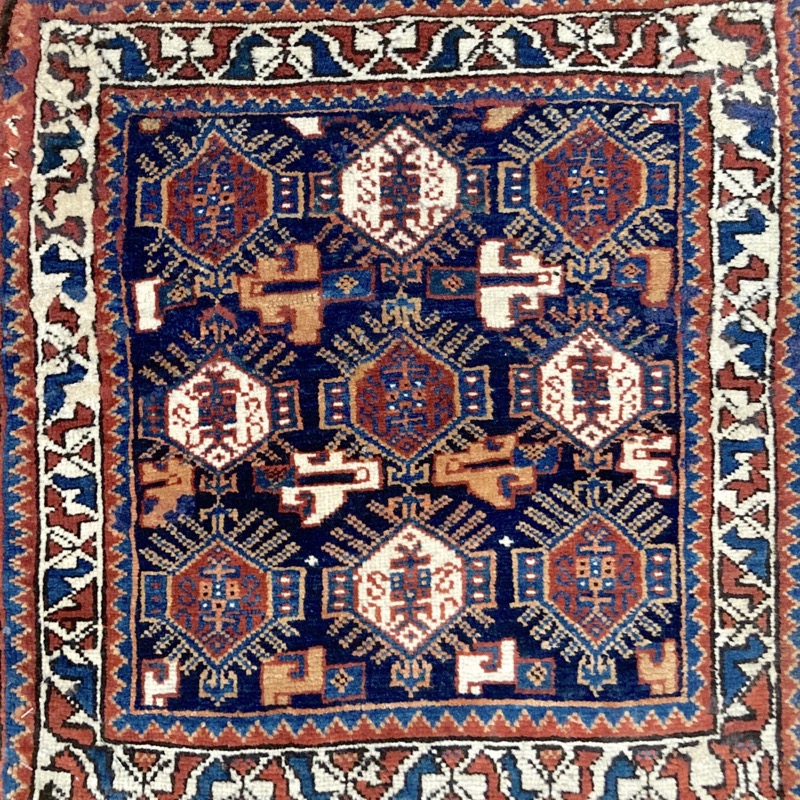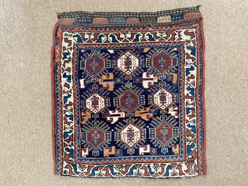 Antique Qashqai bagface, woven pre 1900, with great colour and unusual design. The piece has lost the bottom outer border. Cf.”Nomadic Visions” M.Rothberg pl 162