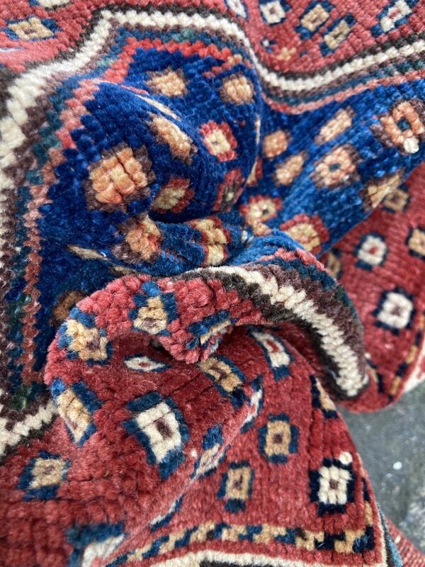 With good colours, a strikingly graphic design this desirable bagface is in nice condition for its age.