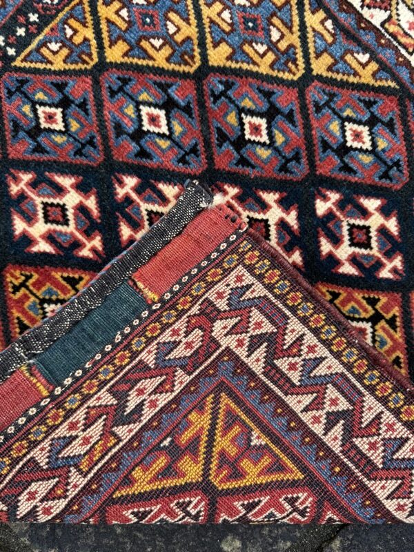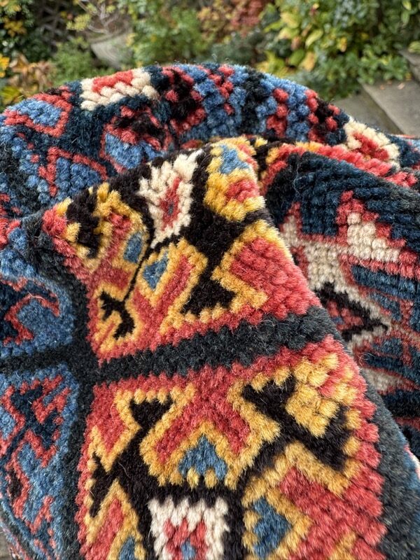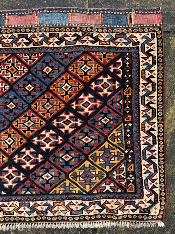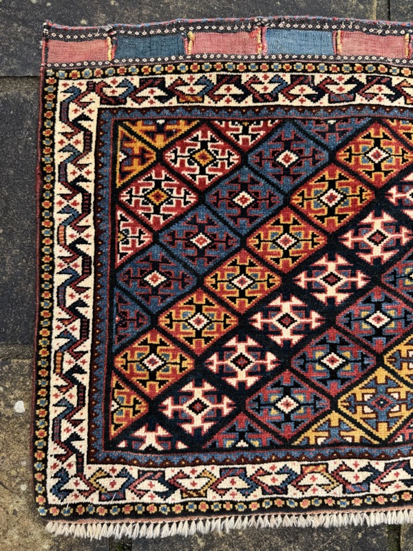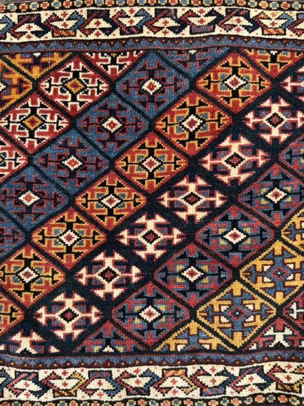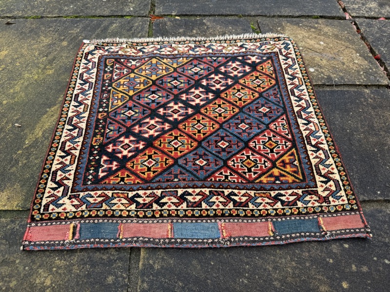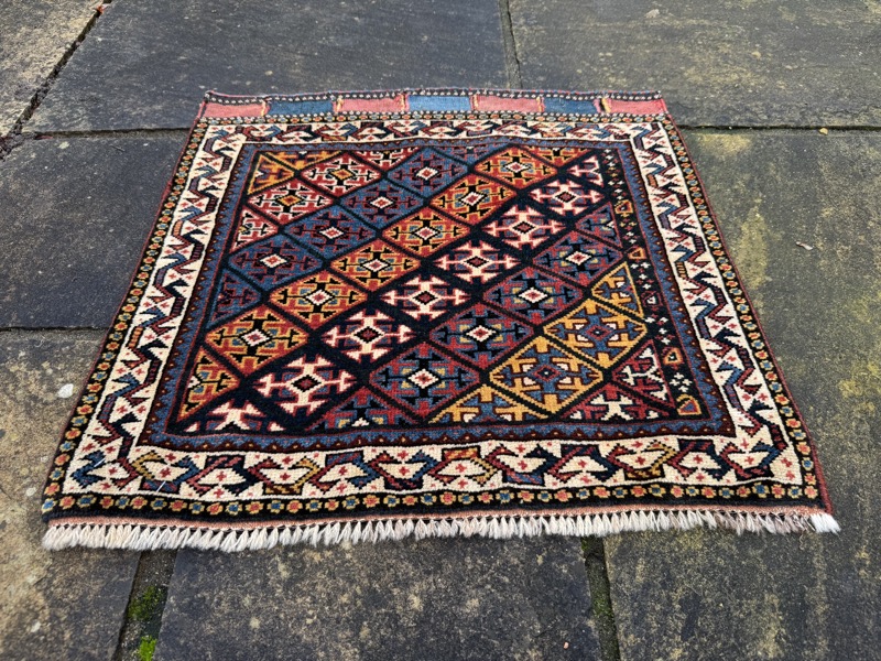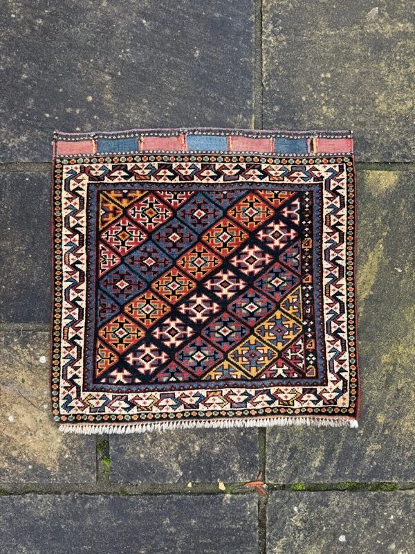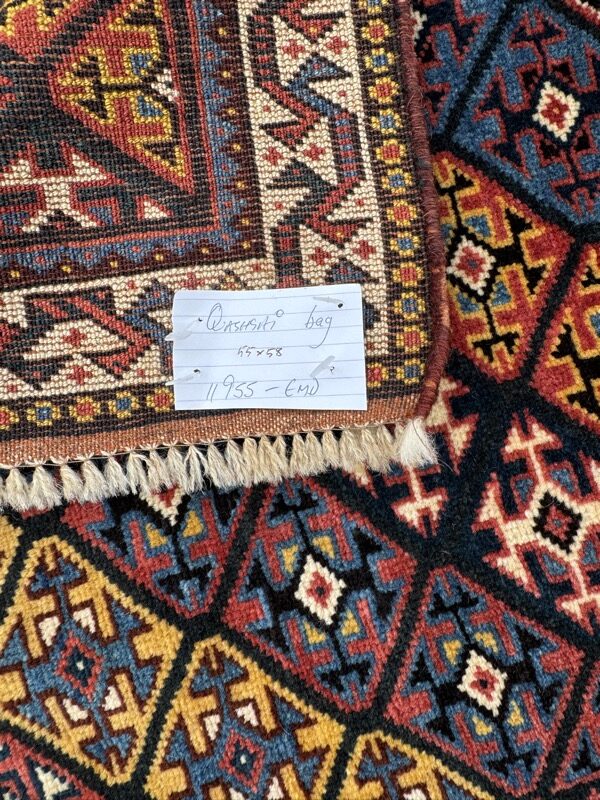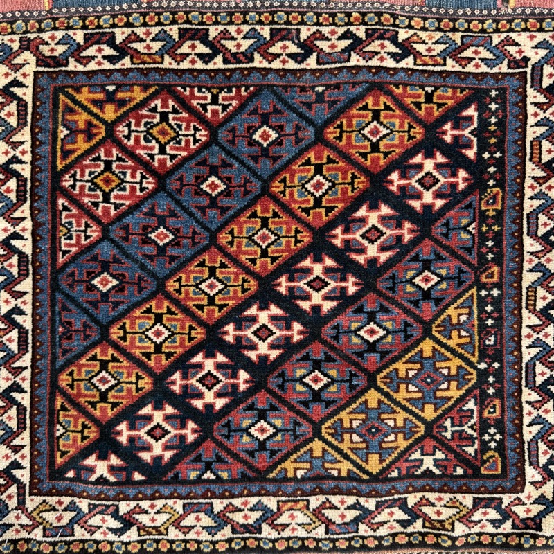 With lustrous wool, great saturated colours, and in fabulous condition, this Quashgai bagface is a truly wonderful item. Late 19th century. From a noted European collection.