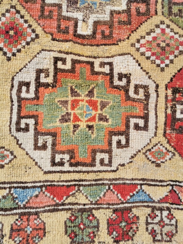 This particular group of weavers are attributed by the late Harald Böhmer to the Cappadocia region in central Turkey in his famous book Teppiche der Bauern und Nomaden in Anatolien. The principal motif is that of the Memling gul used on many Turkic rugs.