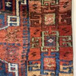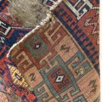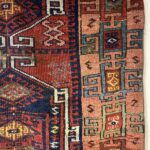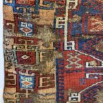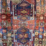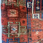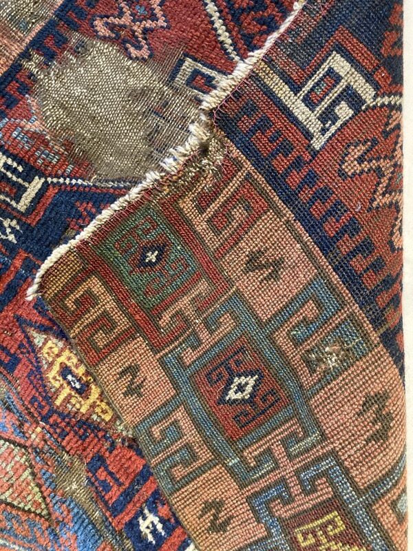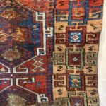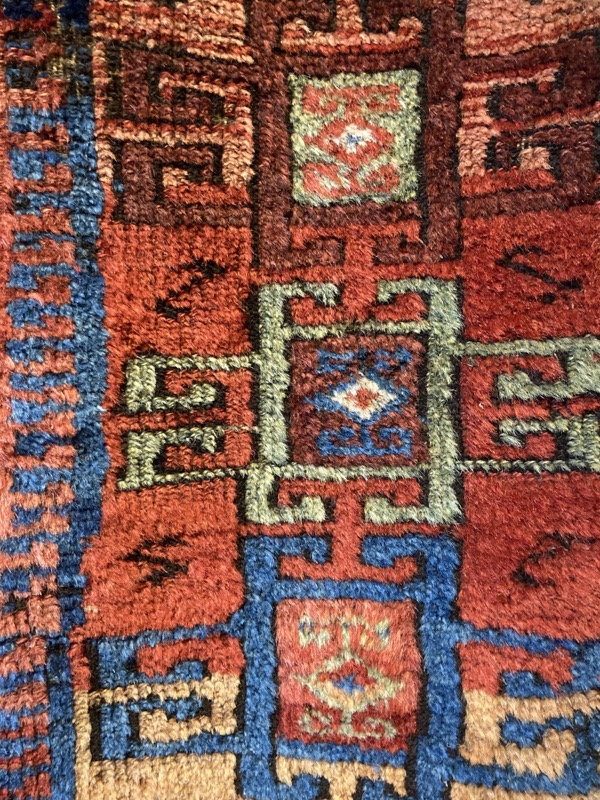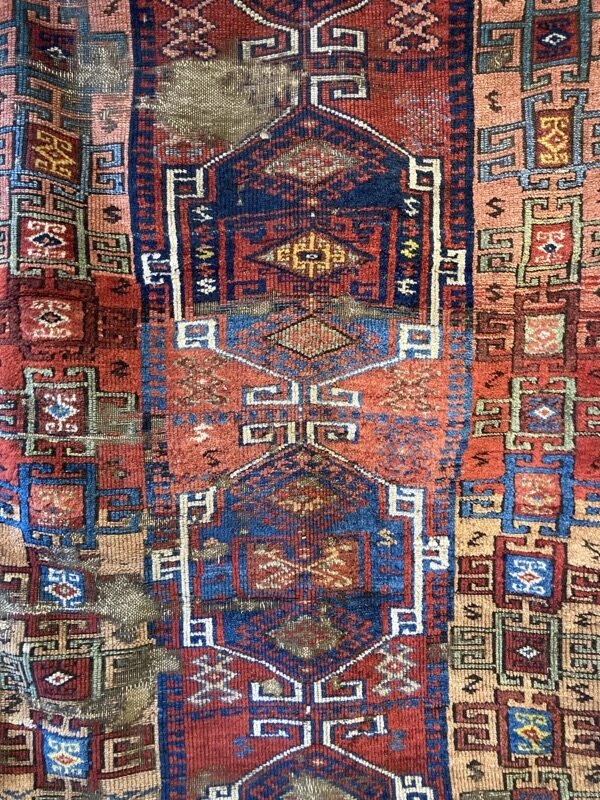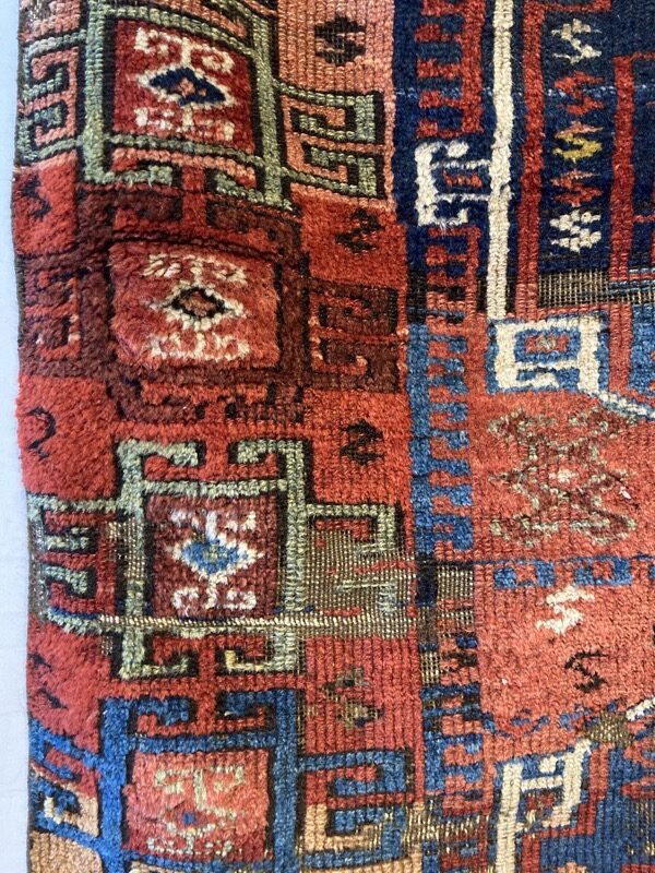 A riot of saturated colours, leaning heavily on the reds, this mid 19th century eastern Anatolian rug was probably woven by Kurdish weavers. In a distressed but conserved condition (losses to sides, top, and bottom) the pile is full and lustrous.