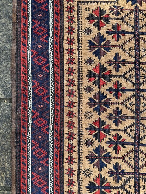 In stunningly great condition, this late 19th century piece has a well-patinated wool pile, with the classic tree of life design. Note how the kelim infill motifs pick up on the outer guard border design… a collectable piece.