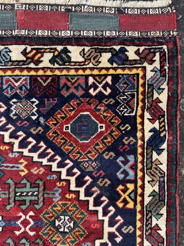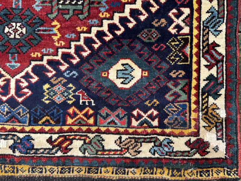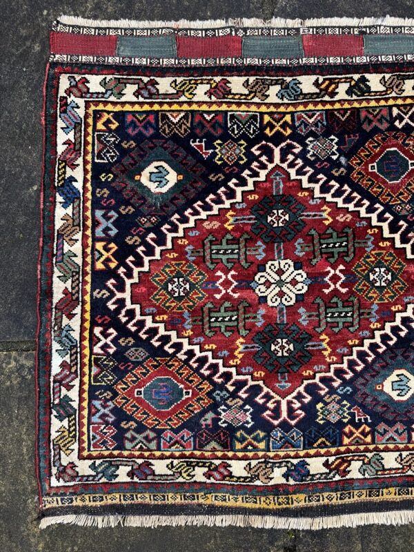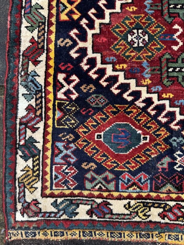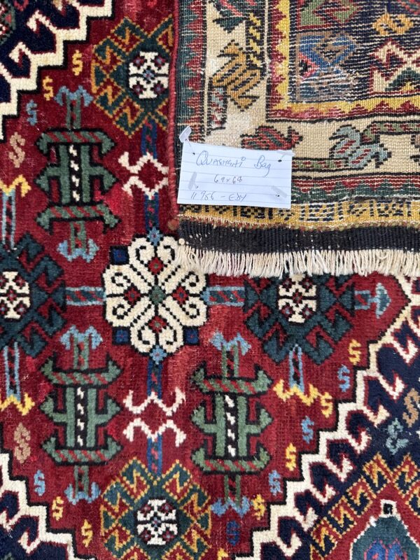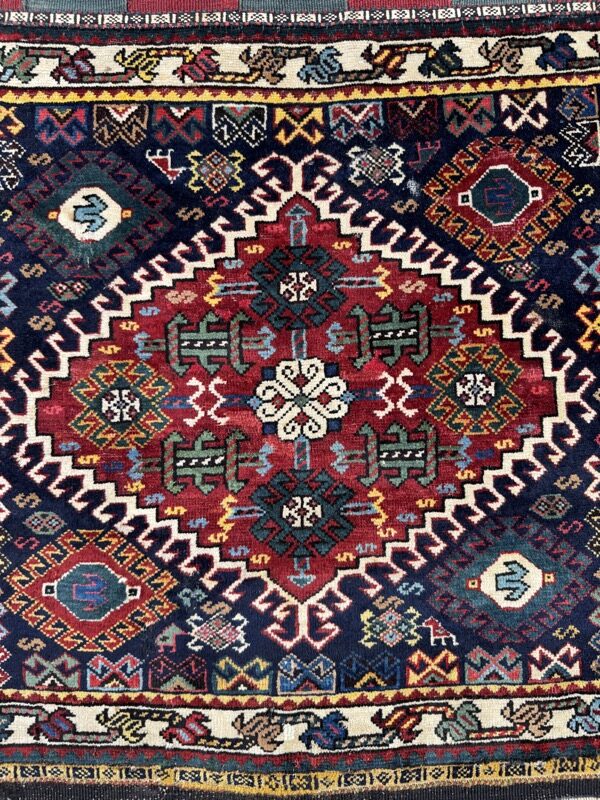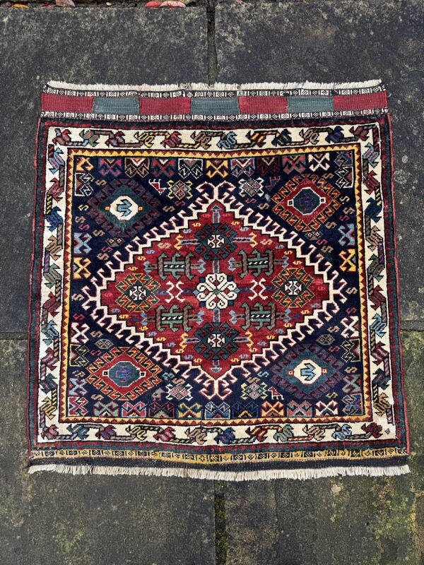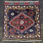 A strong graphically striking design with powerful fruity colours, this late 19th century piece is typical of a well known group of Quashgai weavings.Note minor moth damage and areas of repiling.