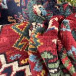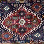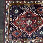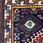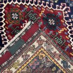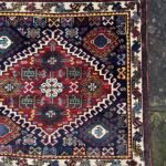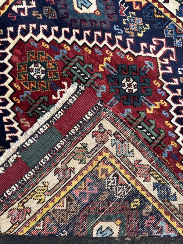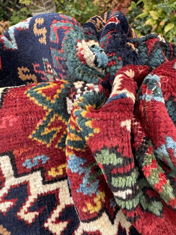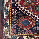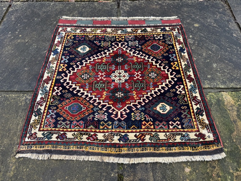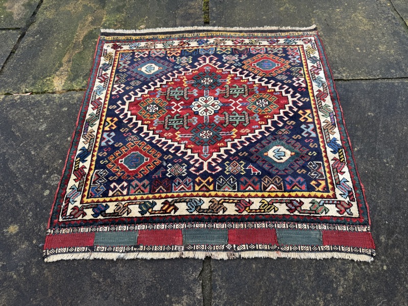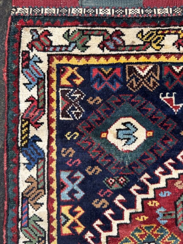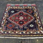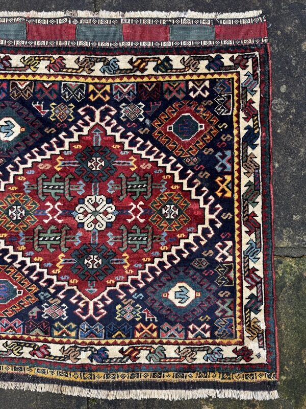 A strong graphically striking design with powerful fruity colours, this late 19th century piece is typical of a well known group of Quashgai weavings.Note minor moth damage and areas of repiling.